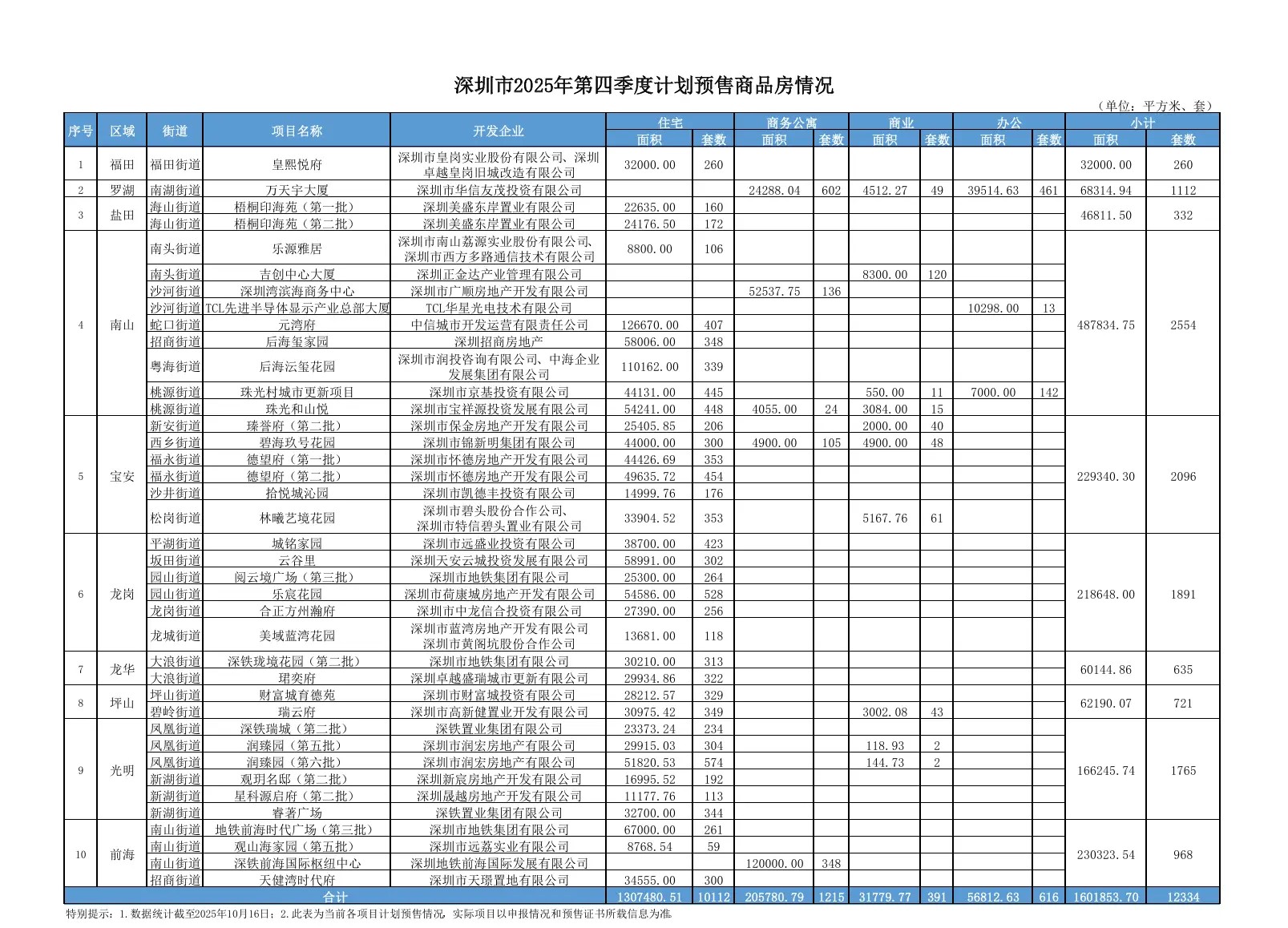 住宅一共10112套,福田区最少,只有 260套新房;