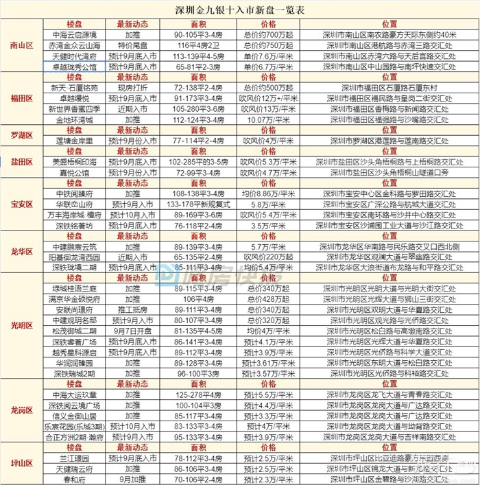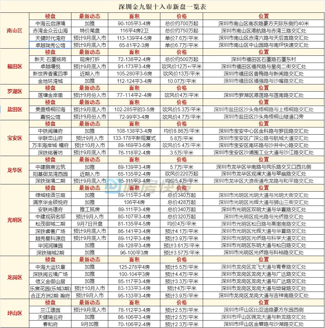 本期收集了44个9-10月待入市楼盘清单最新动态