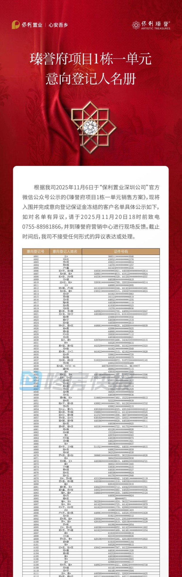 272人选197套房,宝安保利瑧誉府登记名单出炉