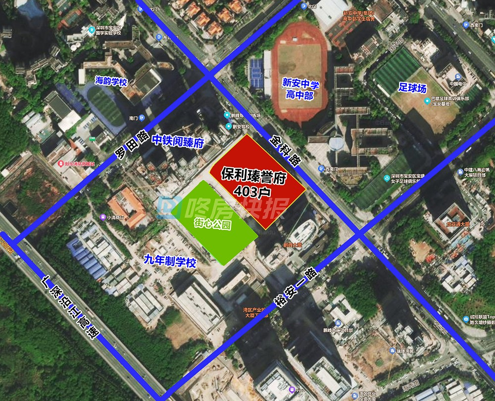 位于宝安中心区新安街道金科路与裕安路交汇处西北侧