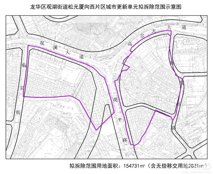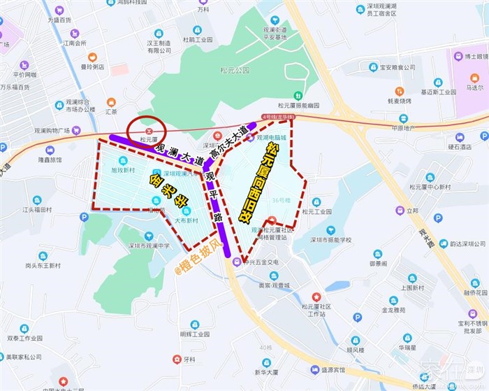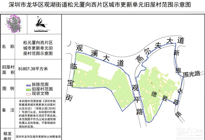 今天,观湖街道松元厦向西片区城市更新单元旧屋村认定范围公示。
