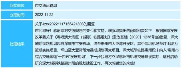 深圳至惠州大亚湾城际铁路预计2026年建成