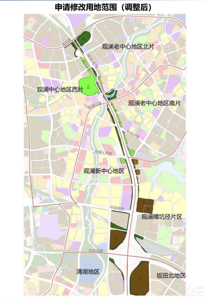 为推进梅观大道北段(清湖立交至观澜主线收费站)市政化改造工程的实施,拟对道路沿线涉及的[观澜中心地区西片]、[观澜老中心地区北片]、[观澜老中心地区南片]、[观澜新中心地区]、[观澜樟坑径片区]、[清湖地区]和[坂田北地区]法定图则共60个地块进行规划调整。该事项已经市规划主管部门审议并原则通过,现依据《中华人民共和国城乡规划法》、《深圳市城市规划条例》等相关规定,对该规划调整事项公开展示如下
