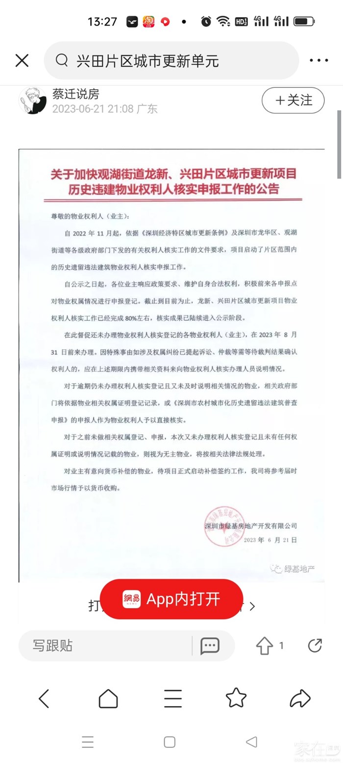 目前兴田和龙新片区城市更新阶段在确权阶段,开发商主体已发通告,还未确权的业主,将按无业主启动法律程序。不知后期的推进速度如何?