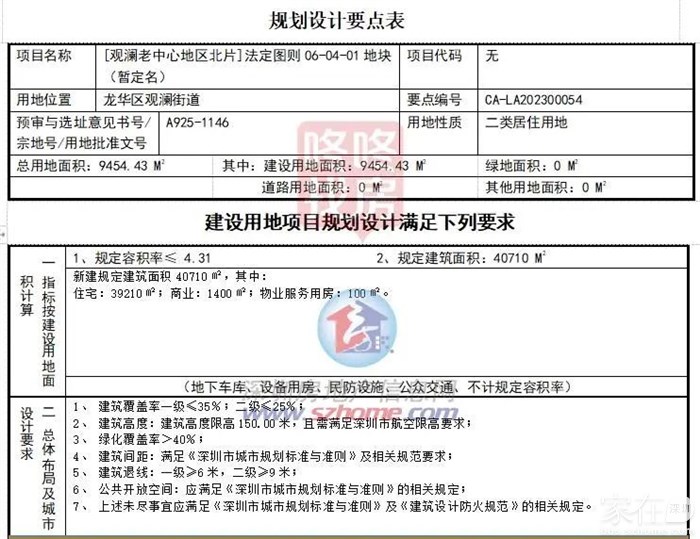 根据规划,本宗地规定建筑面积 40710平方米,包括:住宅39210平方米(其中普通商品住房 39210平方米)、商业1400平方米、物业服务用房100平方。
