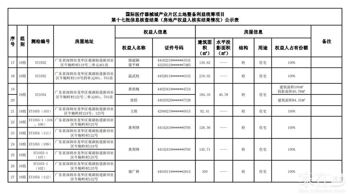 国际医疗器械城产业片区土地整备利益统筹项目现场指挥部(以下简称“现场指挥部”)就项目范围内建筑物等信息进行了相关核查,现将信息核查结果在项目现场指挥部、股份合作公司公告栏、社区工作站公告栏、观湖街道办事处、区政府网站、深圳商报进行公示。