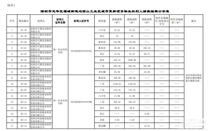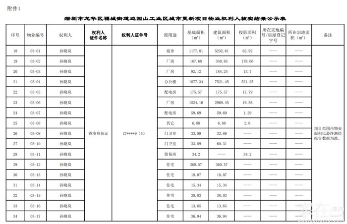 园山工业区旧改权利人核实结果