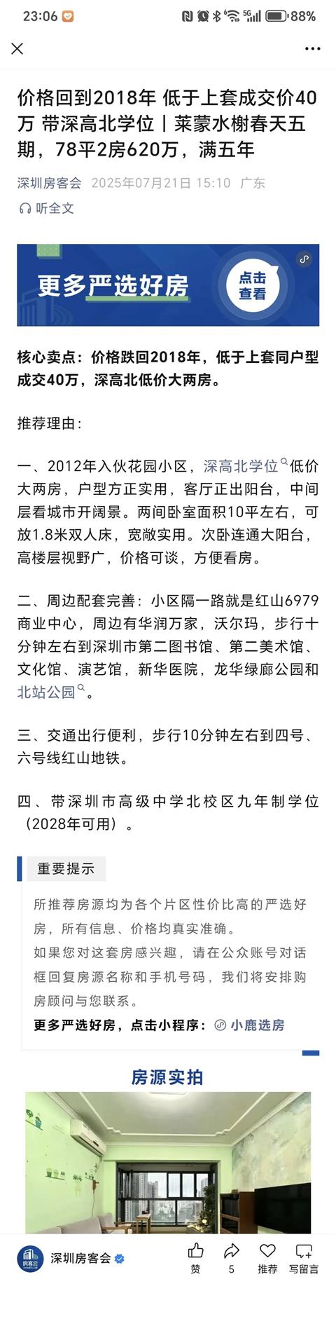http://i5.szhomeimg.com/m/2025/07/11/07110912006969873.jpg引用我是钟叔叔好朋友的发言:结果投出了星河盛世568万就能买三房的结果引用alexhy的发言:目前是要大家都认清现实的时候了,以前说深圳房价会跌有人信吗?以前说深高北成绩作假有人信吗?目前都知道深外龙才是龙华区绝对老大,深圳市地段生基本上第一的四大率,买家用脚投票。引用我是钟叔叔好朋友的发言:用你深外学子的ID发个私信嘛引用alexhy的发言:一点具体信息都没有,差评。我发的是微信的。引用我是钟叔叔好朋友的发言:还有吗?