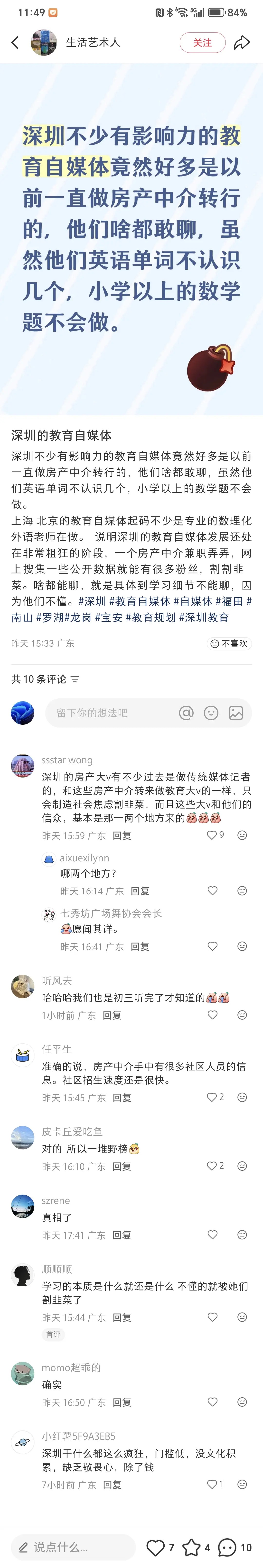 引用我是钟叔叔好朋友的发言:人家通过给星河盛世当带头大哥,不允许星河盛世涨价,也做出了牺牲啊引用alexhy的发言:龙华大 V也是厉害,通过吹捧深高北和龙华实验学校,靠收咨询费买了四套房还有一辆宝马车,据说存款还有不少,韭菜被人割了!还要帮着数钱。引用我是钟叔叔好朋友的发言:深外龙都能号称深圳顶级名校,top3就好像也没那么过分啊引用alexhy的发言:深高北宣传全市 TOP3,不进去读书试下,听自媒体宣传不就容易当韭菜吗?引用我是钟叔叔好朋友的发言:你非得吃屎才才能确认屎是不能吃的吗?引用alexhy的发言:过来住一下,看下是不是吵。深高北和龙华实验学校搞假成绩被扒光了吧?引用我是钟叔叔好朋友的发言:夹着几个主干道,谁住谁知道引用alexhy的发言:这好像没啥啊。引用我是钟叔叔好朋友的发言:听听业主怎么说的,星河盛世真热闹啊!引用alexhy的发言:这个不报希望,但是二手房业主绝对没人说亏惨了。引用我是钟叔叔好朋友的发言:星河盛世上限就不得了了