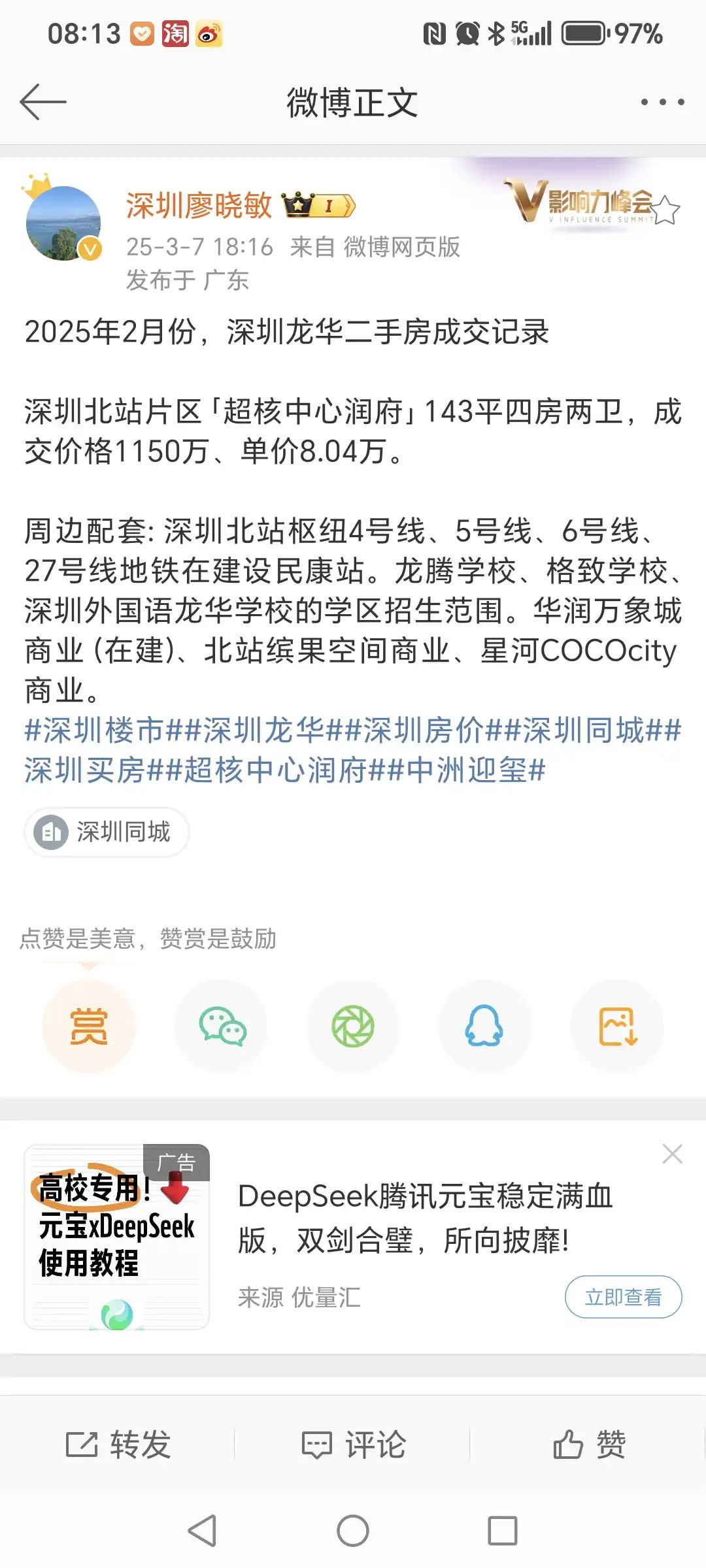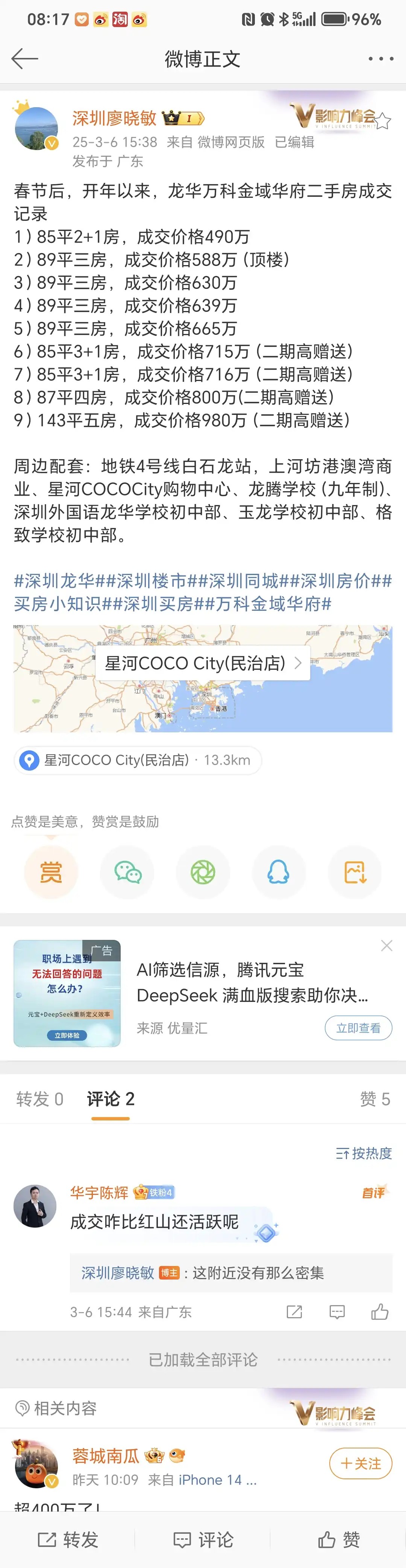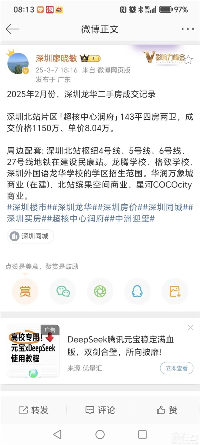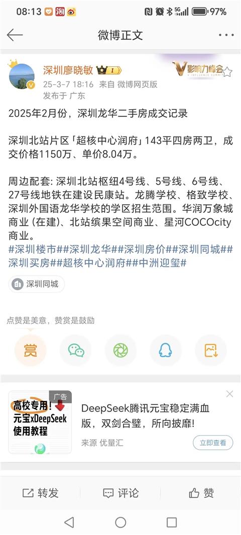 引用我是钟叔叔好朋友的发言:和星河盛世有关系吗?引用alexhy的发言:引用我是钟叔叔好朋友的发言:那不吹一吹?引用alexhy的发言:星河盛世一年卖 7 套啊,什么平台这么有才?引用我是钟叔叔好朋友的发言:哦,才590万呀,深外龙有这样总价的三房吗?引用alexhy的发言:星河盛世 2 月就成交一套三房 590,1 月成交 7 套,不是发了吗?深高北没人买也不要激动嘛,后面是常态。引用我是钟叔叔好朋友的发言:金域华府,玖龙玺,圣莫丽斯,超核华润,可偏偏就不敢提星河盛世?星河盛世是咋了?又半死不活了吗?引用alexhy的发言:
