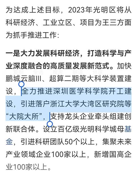 引用楼主的发言:医学科学院虽然是多点布局,但我认为,光明科学城这个点应该是其中非常重要的一个点,从22年的两层楼的临时办公场地到23年开局建设工作布署来看,这个机构在光明的团队不会太小。引用光明传麒的发言:从深圳市卫健委的回复中,我们还是可以得出很多关于深圳医学科学院有用的信息,一、布局方式:多点布局;二、布局原则:深圳“双区”建设战略部署、“20+8”产业布局;三、深圳医学院性质:围绕医学基础研究、应用基础研究组织实施科研工作;四、深圳医学科学院不另行自建临床医院。引用1楼冰糖橙的发言:这个医学院位置到底在哪?新湖街道?
