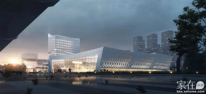 项目的设计概念是取山川水流层叠的立体感,落在整体建筑布局上形成立体聚落的叠合效果,在建筑体量上具象的表达出抽象的远山近川的流畅感,把阳光在水流上反射的波光粼粼的效果运用在建筑上,用渐变镂空的手法把抽象的波光转译成建筑语言,塑造光侨文体中心整体的闪光效果。