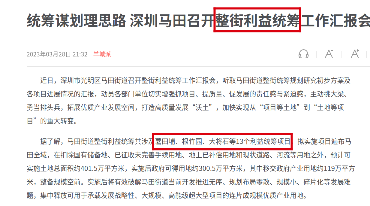 马田街道2023年度“十大攻坚克难任务”,土地整备项目就占了四个。