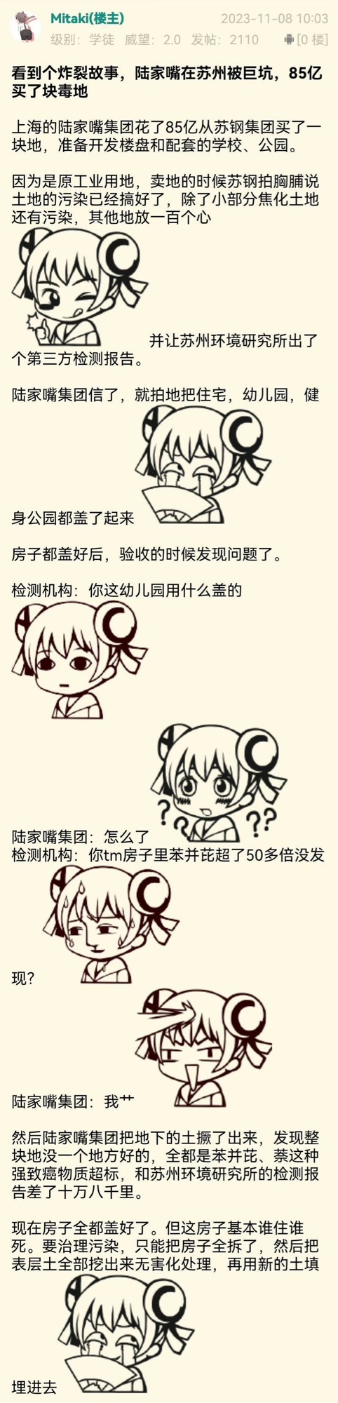 公告里透露,陆家嘴集团下属子公司因土壤污染问题,17块地里面有14块地有剧毒,将江苏苏钢集团有限公司(以下简称“苏钢集团”)、苏州市环境科学研究所、苏州市苏城环境科技有限责任公司、苏州国家高新技术产业开发区管理委员会、苏州市自然资源和规划局告上法庭。
