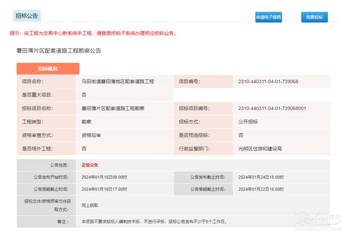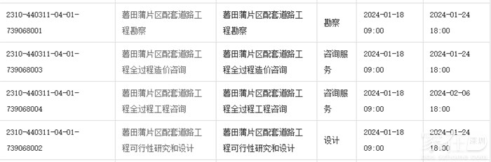 住建局一连发布四条薯田蒲片区配套道路工程招标。