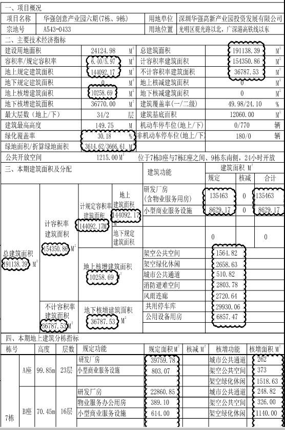 深圳华强高新产业园投资发展有限公司申请变更“华强创意产业园”(宗地号:A543-0433)六期(7栋、9栋)《建设工程规划许可证》,涉及已批总平面图及指标调整。现根据《中华人民共和国城乡规划法》相关规定予以公示: