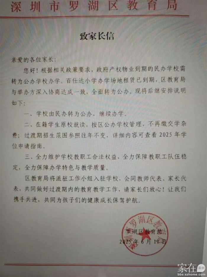 罗湖百仕达转公办了
