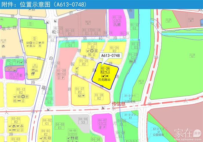 A613-0748宗地位于深圳市光明区凤凰街道月亮路与塘宏路交汇处北侧,宗地面积21068.77平方米,用地性质为二类居住用地+商业用地。