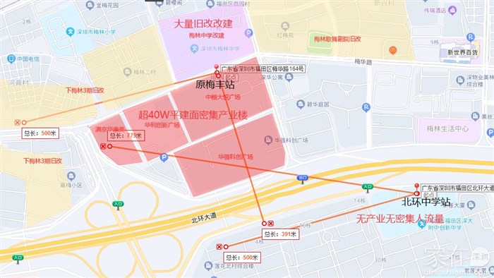 所以当时地铁规划梅丰是最合理的设计,也就是离华强云科创中心和中粮大悦广场这几栋200米高楼越近越好。