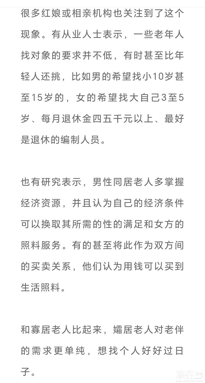 所以这个事就很难成,大家都缺钱,男的不缺钱也不会找大妈