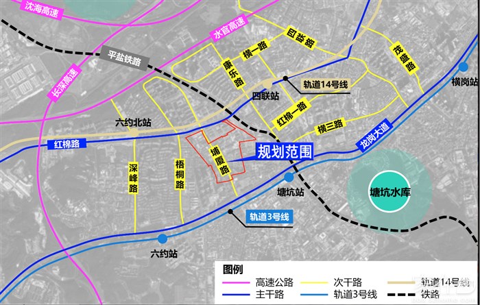 项目位于深圳市龙岗区中部横岗街道六约社区,南侧临近城市主干道龙岗大道,东侧紧临平盐铁路,北侧紧临城市主干道红棉路。
