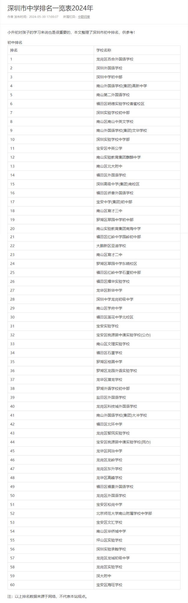 引用16楼顺其自然ABC的发言:网上查坂田只有一所学校能进全市排名,不知道深圳实验坂田学校以后能不能上榜,给坂田的学生多点选择