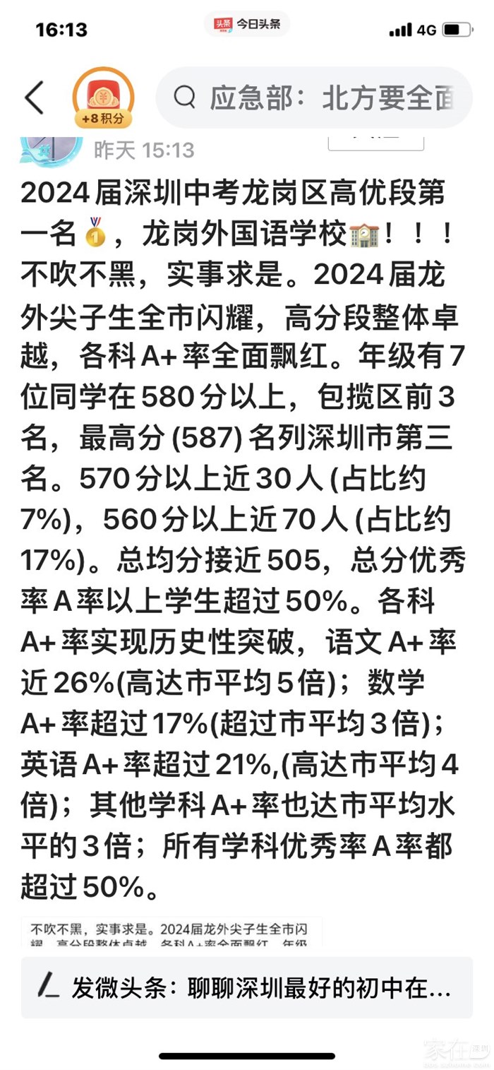 引用5楼liuyi2789的发言:为啥不一样引用楼主的发言:万万没想到,深圳中考龙岗区状元出自坂田五和科高!今年深圳中考难度比以往几年高,580+以上的分数都极少。A+分数降到了565。深大坂田571、龙外云和573、坂田实验574、科技城外国语581。还有个最高分587分,即是五和科高九年一贯制。恭喜恭喜,五和科高第一年参加中考就有好成绩。估计明年报名读初中要挤爆,今年好些家长相对于五和科高还是选择了深实验坂田,明天看来势头将逆转。