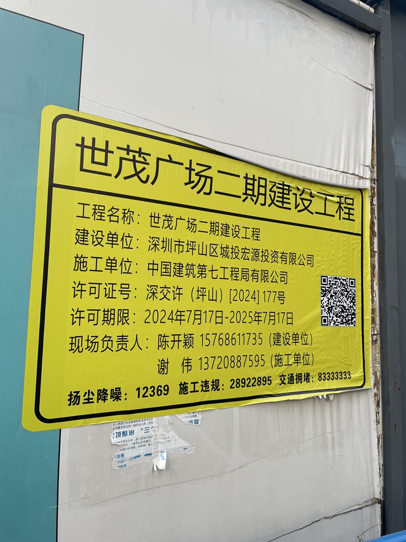 市民您好!关于您反映的咨询事项,经核实,世茂广场二期已于2024年4月2日正式开始复工,2024年12月29日圆满完成地下主体结构,顺利实现“正负零”节点目标,后续的具体施工正在按计划开展,因春节假期工人返乡,待2025年2月13日班组工人们陆续返深后,将继续开展相关施工,感谢您对深圳市坪山区民生诉求工作的支持。承办单位:深圳市坪山区城投公司