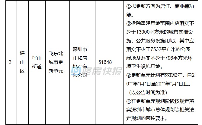 今天看到坪山飞东北旧改更新单元规划的公告: