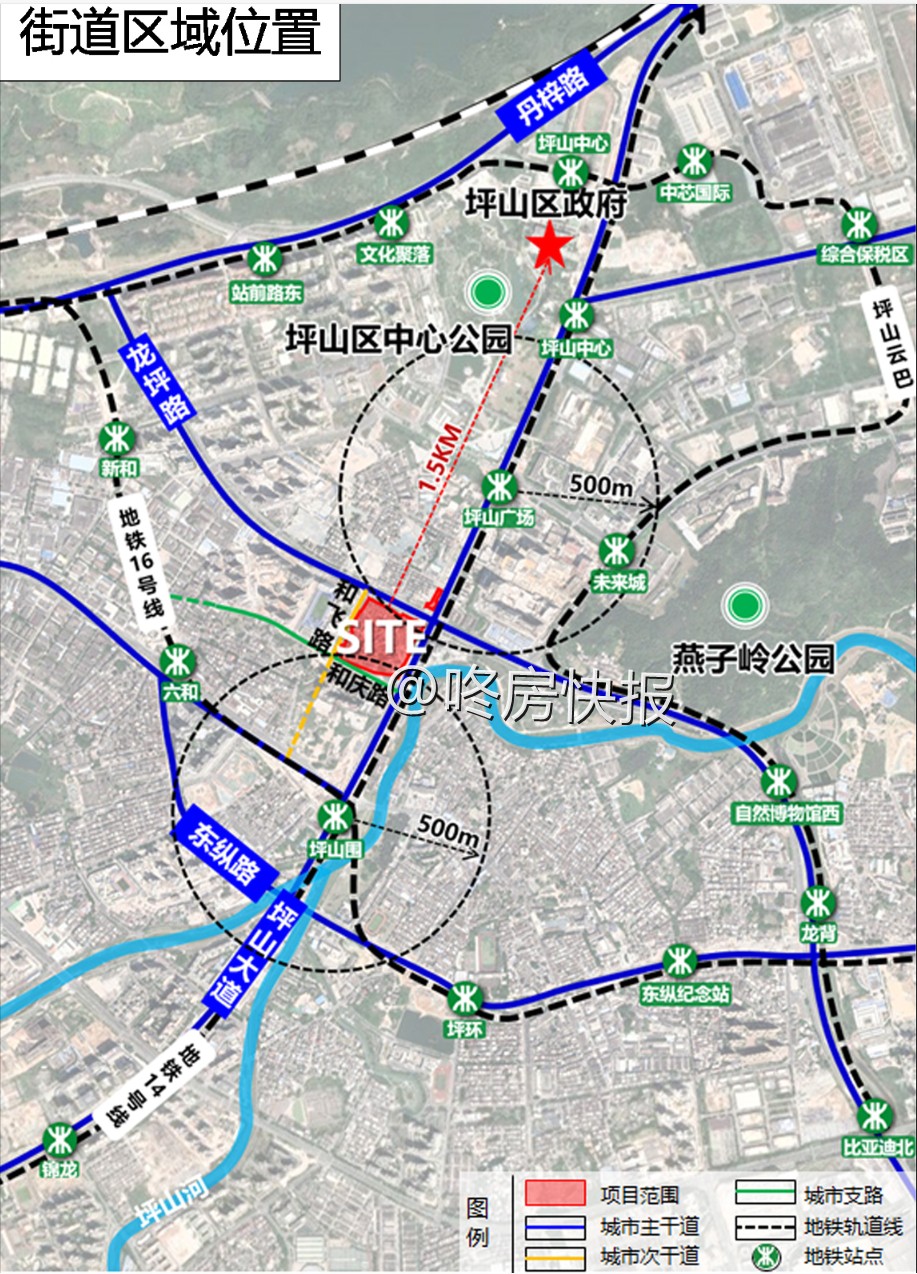 项目位于坪山区坪山街道,坪山大道与龙坪路交会处西南侧。