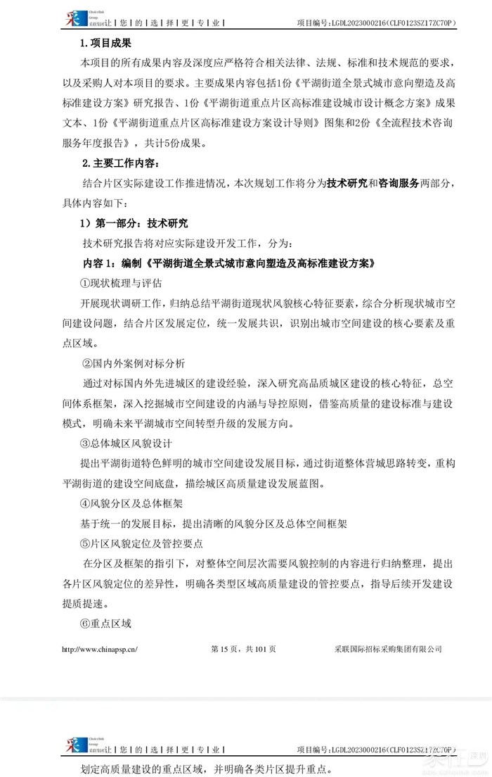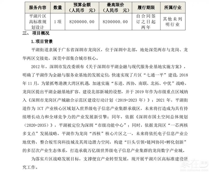 二、项目名称:平湖片区高标准规划设计