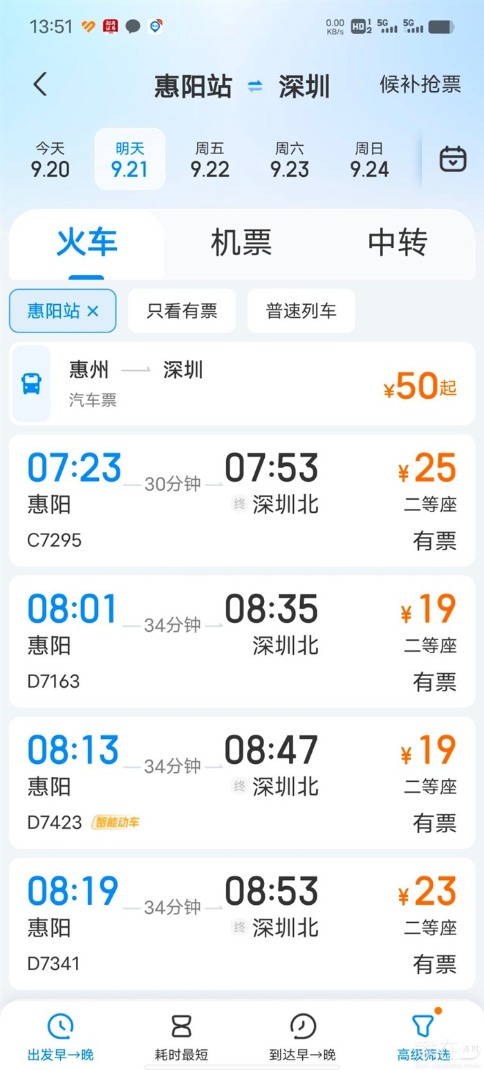 引用南站新城的发言:惠阳南站到深圳北的高铁,现在13:50,明早有票,并不是经常性的购票紧张