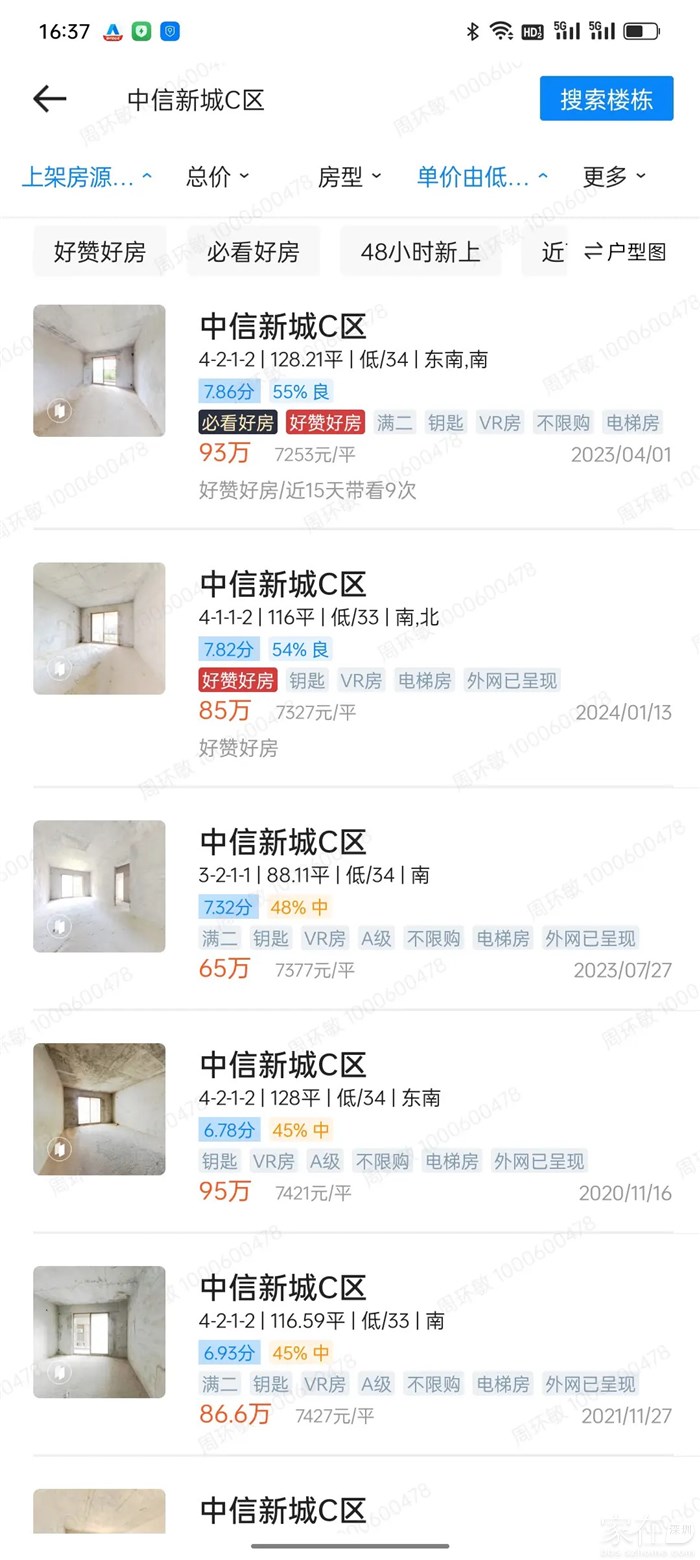想当年,金戈铁马,气吞万里如虎。中信新城当年二手房价格站上1万45!这是有成交数据的。当年中信新城的一手发行价大概4000+,回报满上。