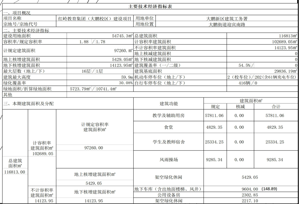 据了解,该项目位于大鹏街道迎宾南路原华侨中学,拟建一所36班寄宿制高中+36班走读制初中学校,提供高中学位1800个、初中学位1800个。项目总用地面积54745平方米,新建6层高中部教学楼1栋、6层初中部教学楼1栋、5层资源中心1栋、16层学生及教师宿舍2栋等,总建筑面积116813平方米。