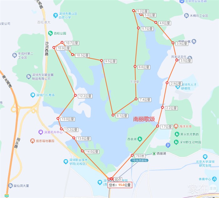 西丽湖绿道工作范围图