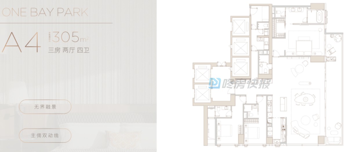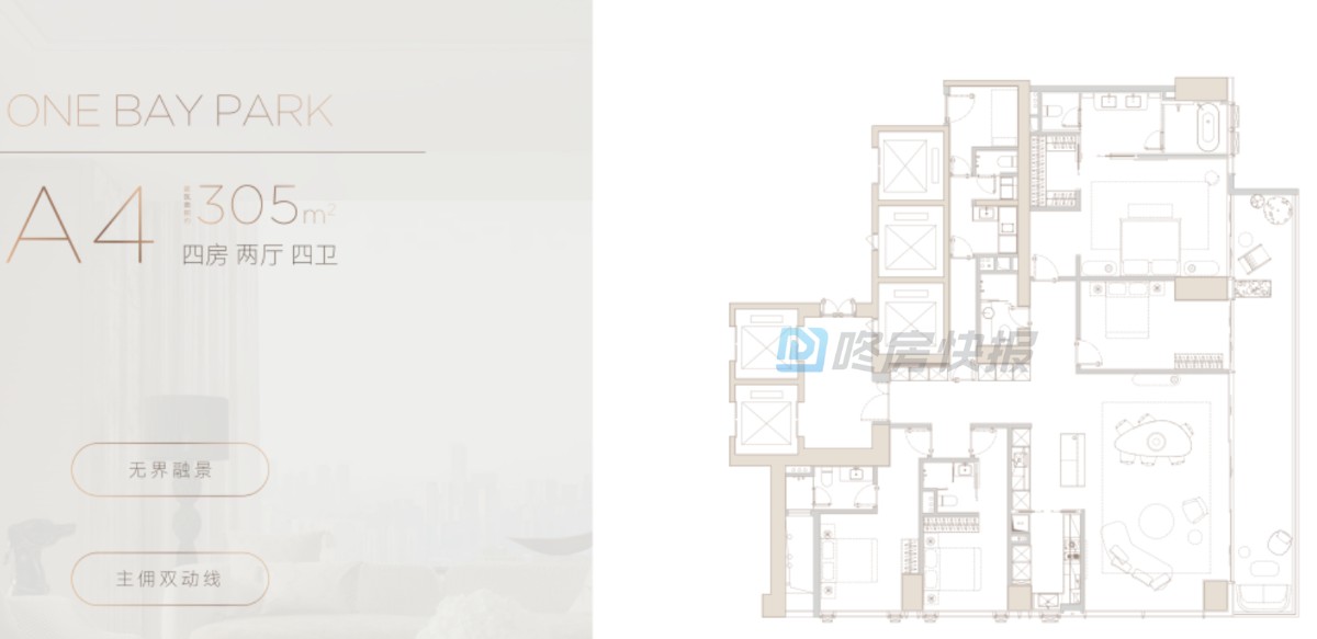小区布局:4栋住宅大平层+1栋高端公寓+精品商业