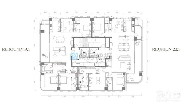主力户型 :186/197/235/247 ㎡ 四-五房,2T2/2T3,得房率 72-75%,高区 34F 以上可看深圳湾海景