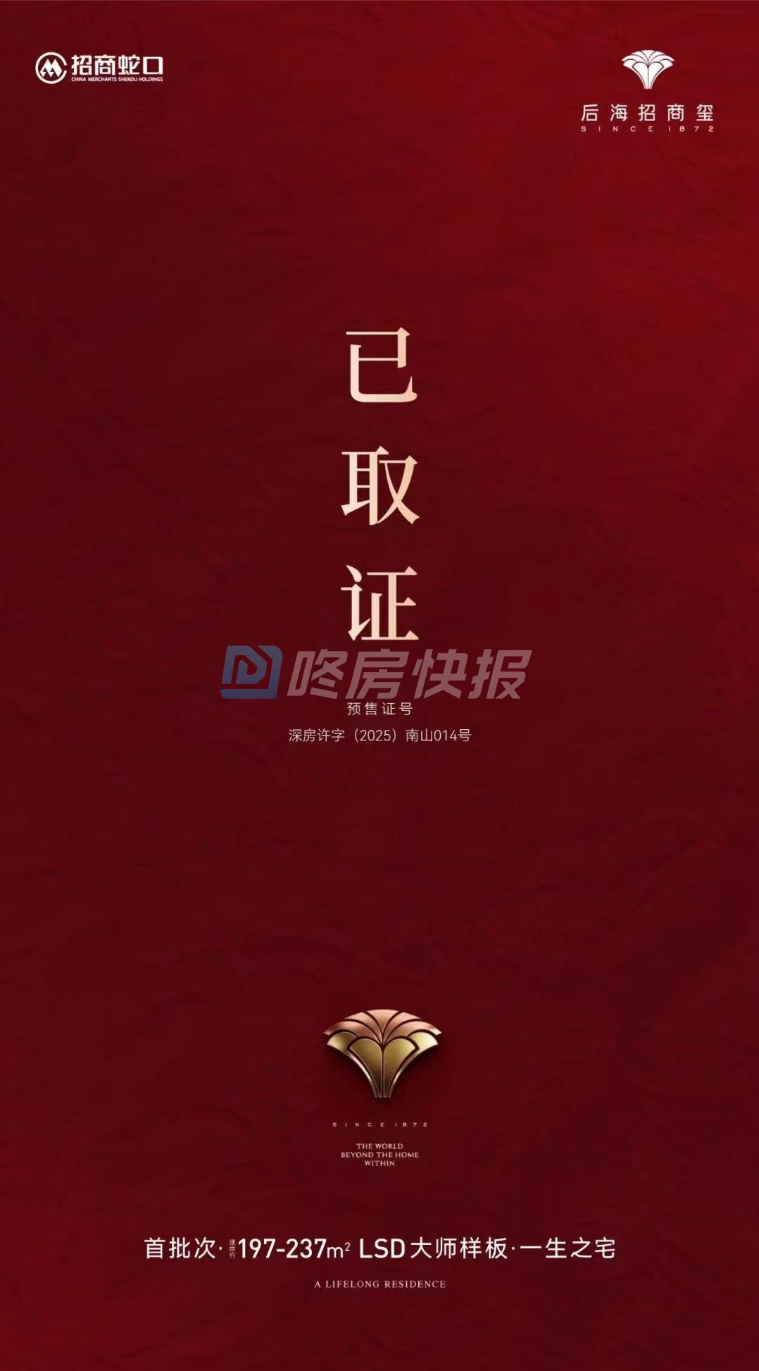 今天后海招商玺也拿证了,首推1栋小高层住宅,共42套197-237㎡四房大平层。