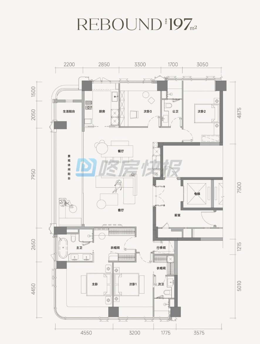 小区布:3 栋 48F 超高层 + 1 栋 25F 高层