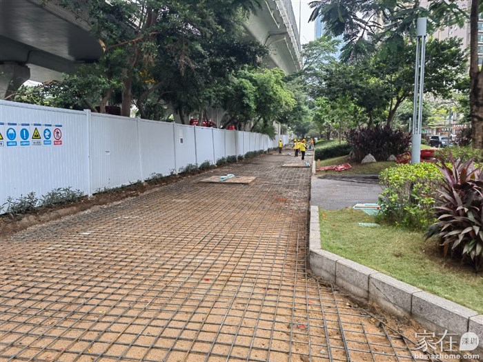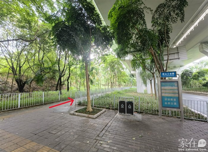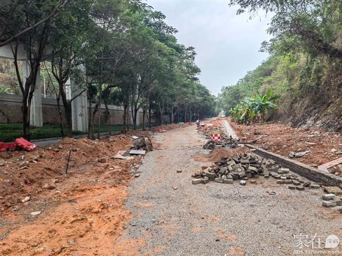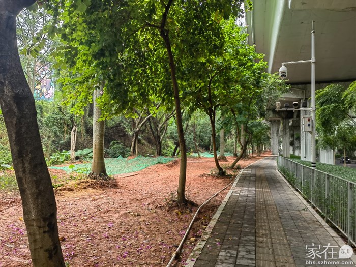 这一段左侧挨着荔山工业园(目前已经改造成了集悦荔山公寓了)的绿化带未来应该也会做成街心公园,右侧有步行道护栏隔绝兴海大道的主干道