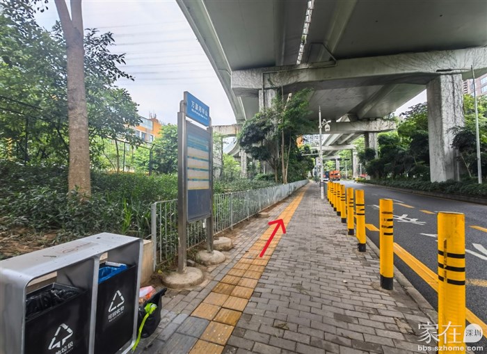 下了天桥就走到了兴海大道右侧人行道这边,这边也靠着小南山
