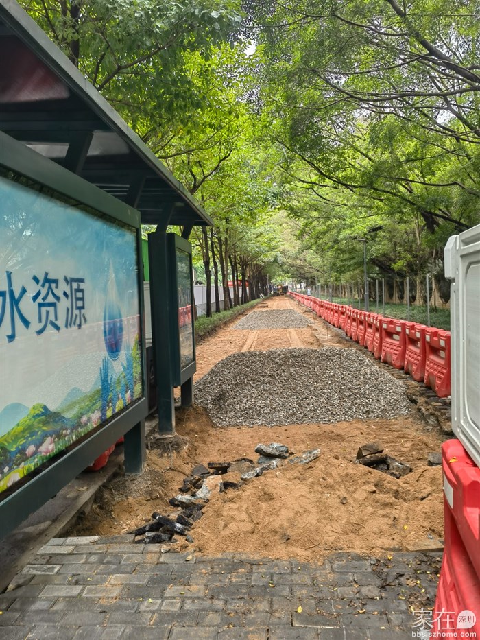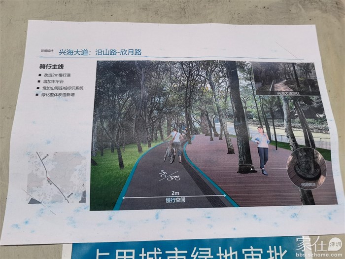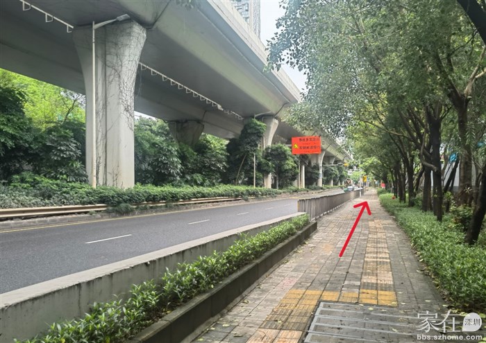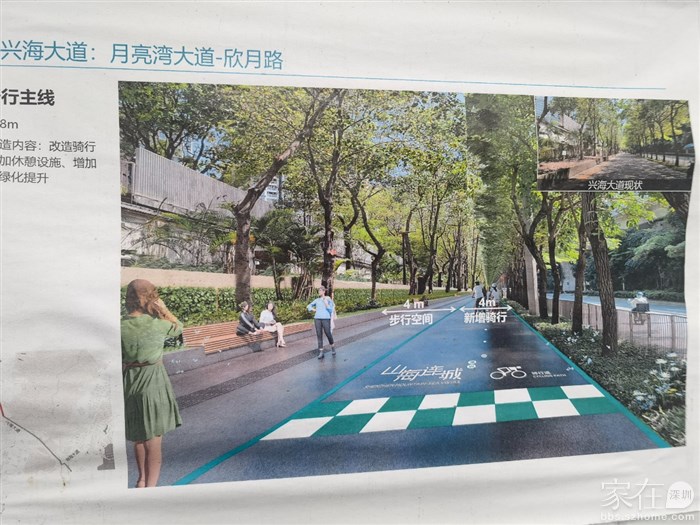 兴海大道右侧人行道,这边绿化带宽一点,可以改造街心公园,这边通往山海津蛇口这边