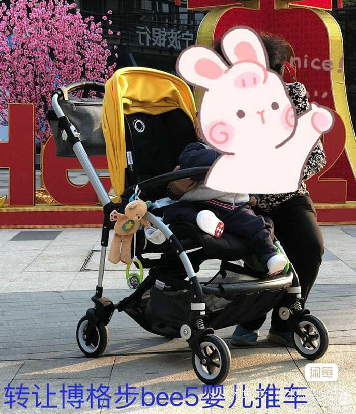 博格步bee5婴儿推车。香港荷花亲子背回来的,轮子非常丝滑,避震效果好,座椅可以正反双向调节,靠背斜度可调,车推把高度可调,推起来省力,宝宝躺坐都很舒服,宝宝三十斤了还能坐。当初买这个牌子的推车图它质量好颜值高,配件全,有全罩雨棚,推车包,除了原装篷,自己后面又多配了一个遮阳篷,挂钩。功能良好,部分配件有使用痕迹。原价近六千购入,现低价转让,先到先得。