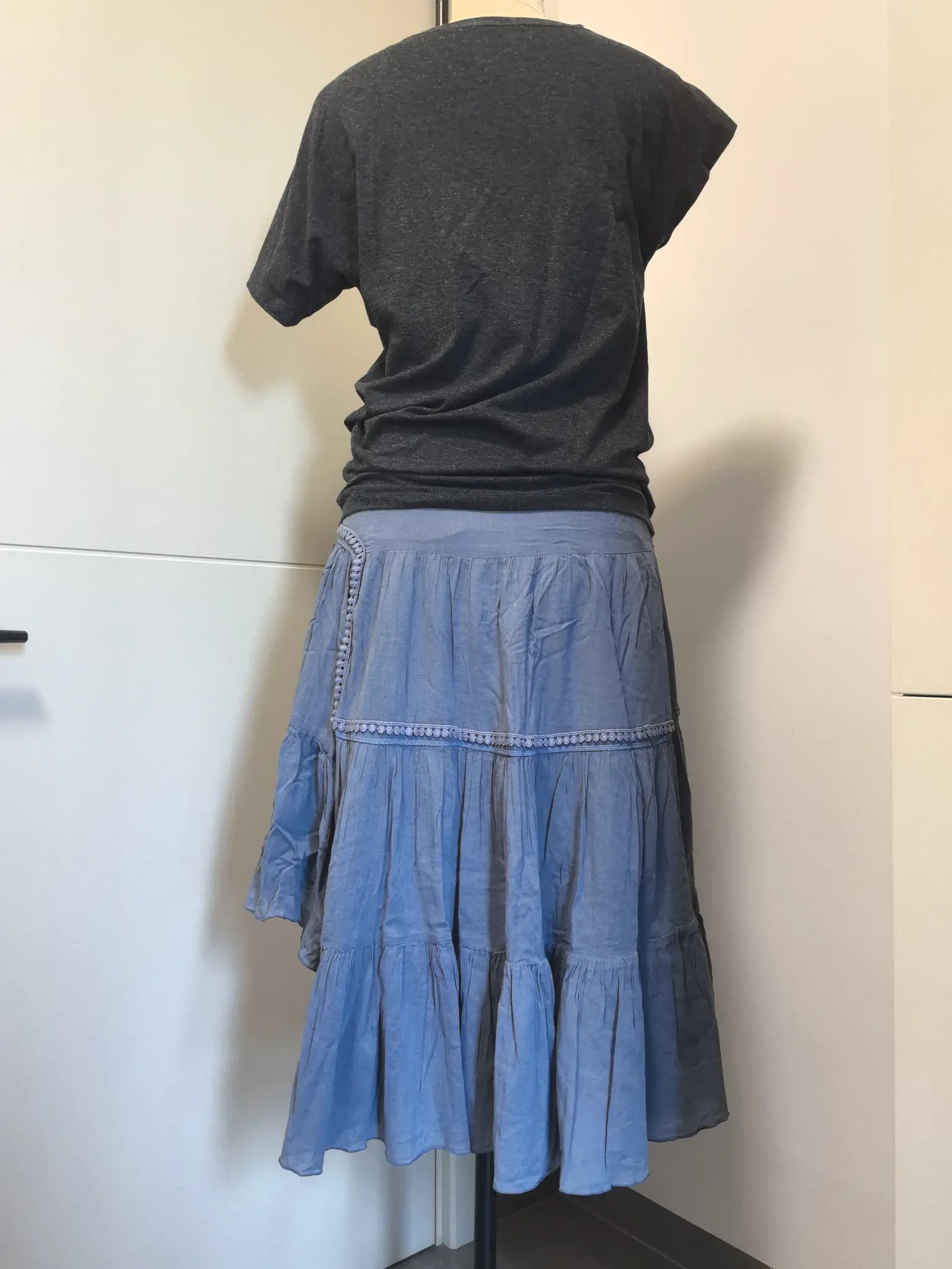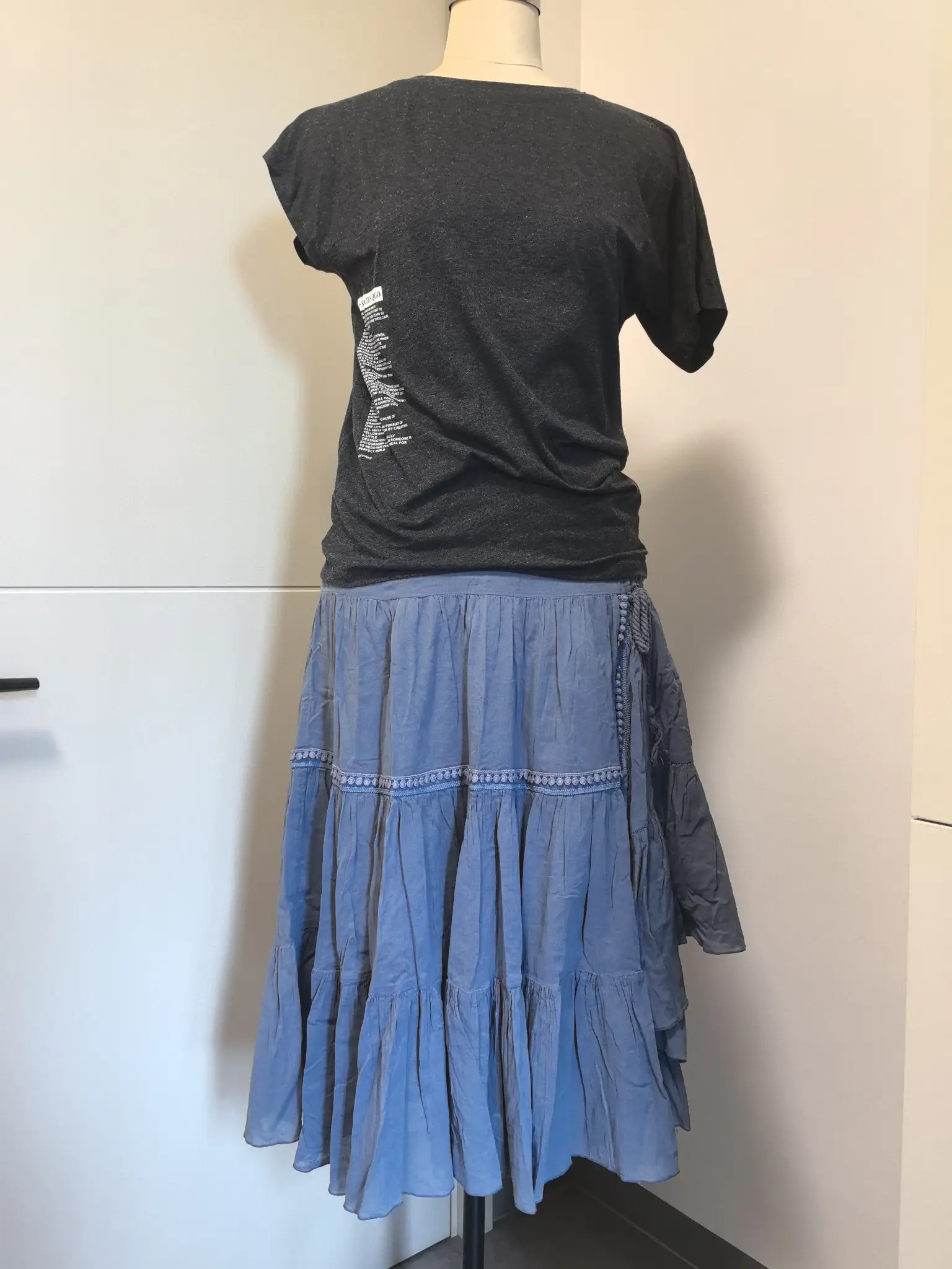 引用楼主的发言:一身都是圣迪奥牌子的,适合L,很少穿,舒适的面料,随意的款式,上衣不对称设计,裙子也是不对称设计,上衣深灰,裙子雾霾蓝,上衣50转,裙子90转,裙子原价300多