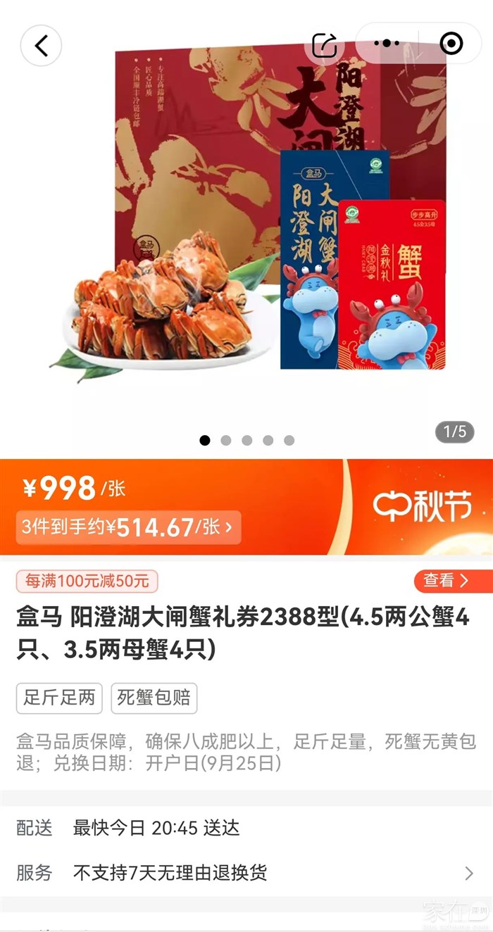盒马 阳澄湖 大闸蟹礼券