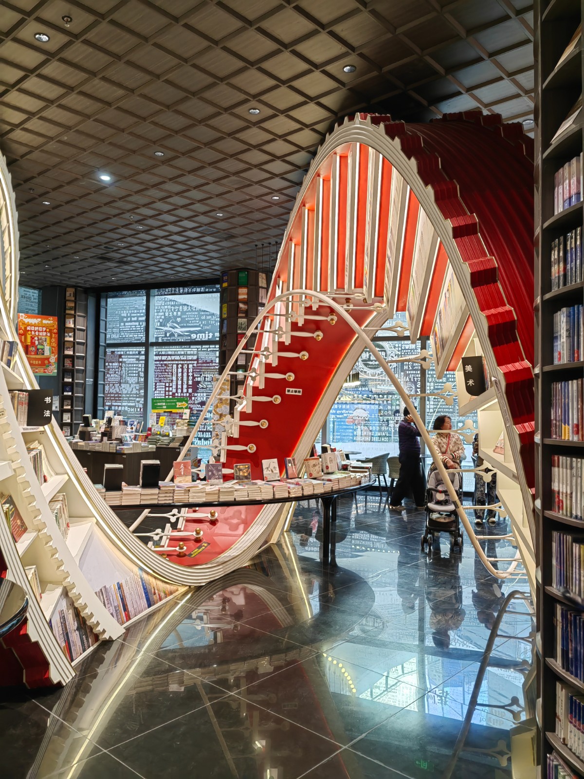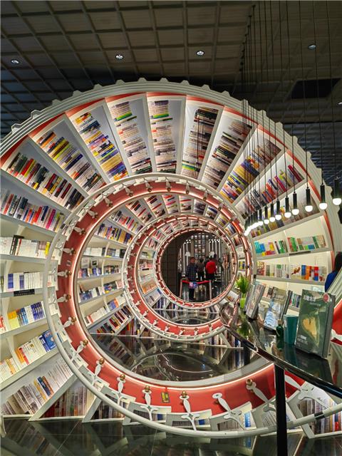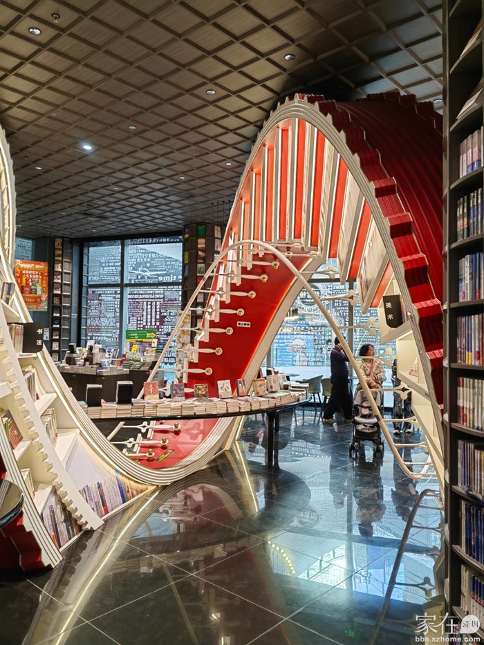 引用楼主的发言:Hi,你没有看错,这就是“网红书店”的钟书阁:店内运用大量玻璃元素装修,使得图书看起来更加高大上,打造出“万花筒”式的繁花世界,尖顶配合上面的灯,则使得整个空间有种时光隧道的感觉。这里藏书60+W本,不仅是书籍的海洋,更是书店设计的“天花板”。在儿童书籍区,少年读者甚至感觉进入游乐场或者少年宫的场景。难怪它吸引了无数读书人过来拍照打卡,最后一张照片是深圳店的地址,赶紧过去看看吧!我的问题是,我要拿取最上层的书籍,怎么样才能办到呢??