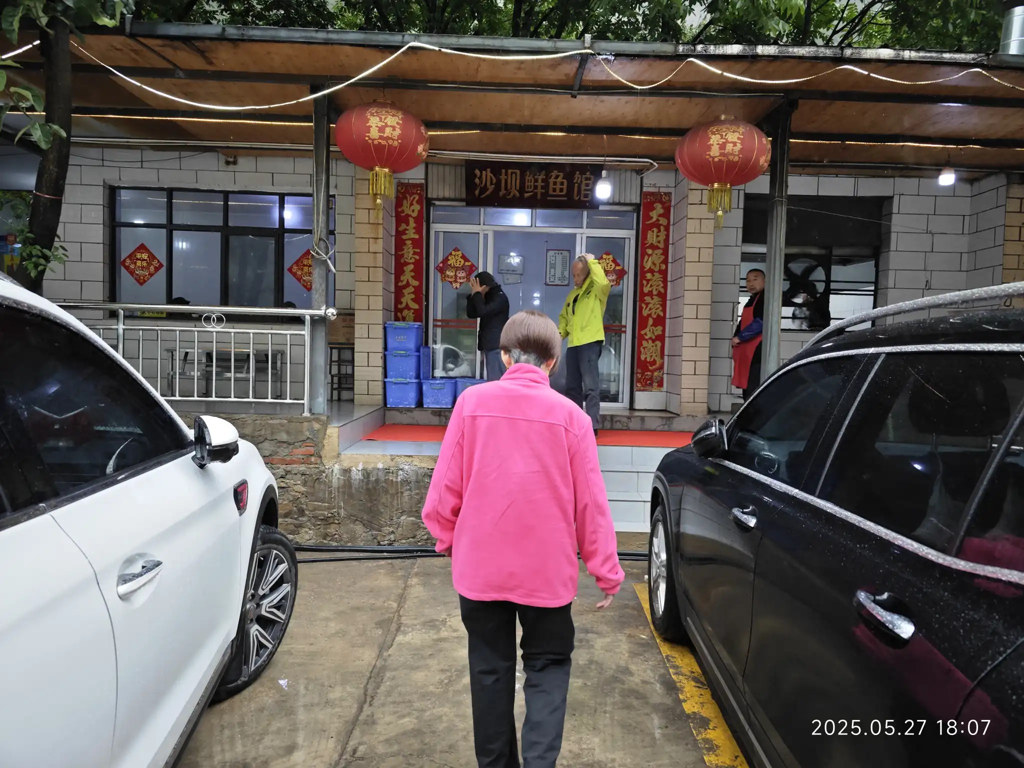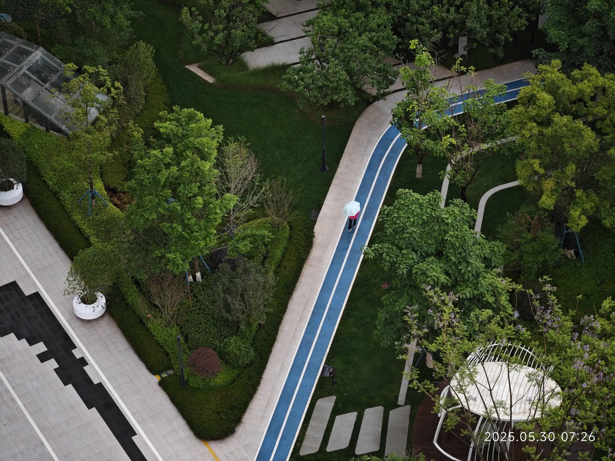 领导冒着雨打着伞也要到楼下走路了