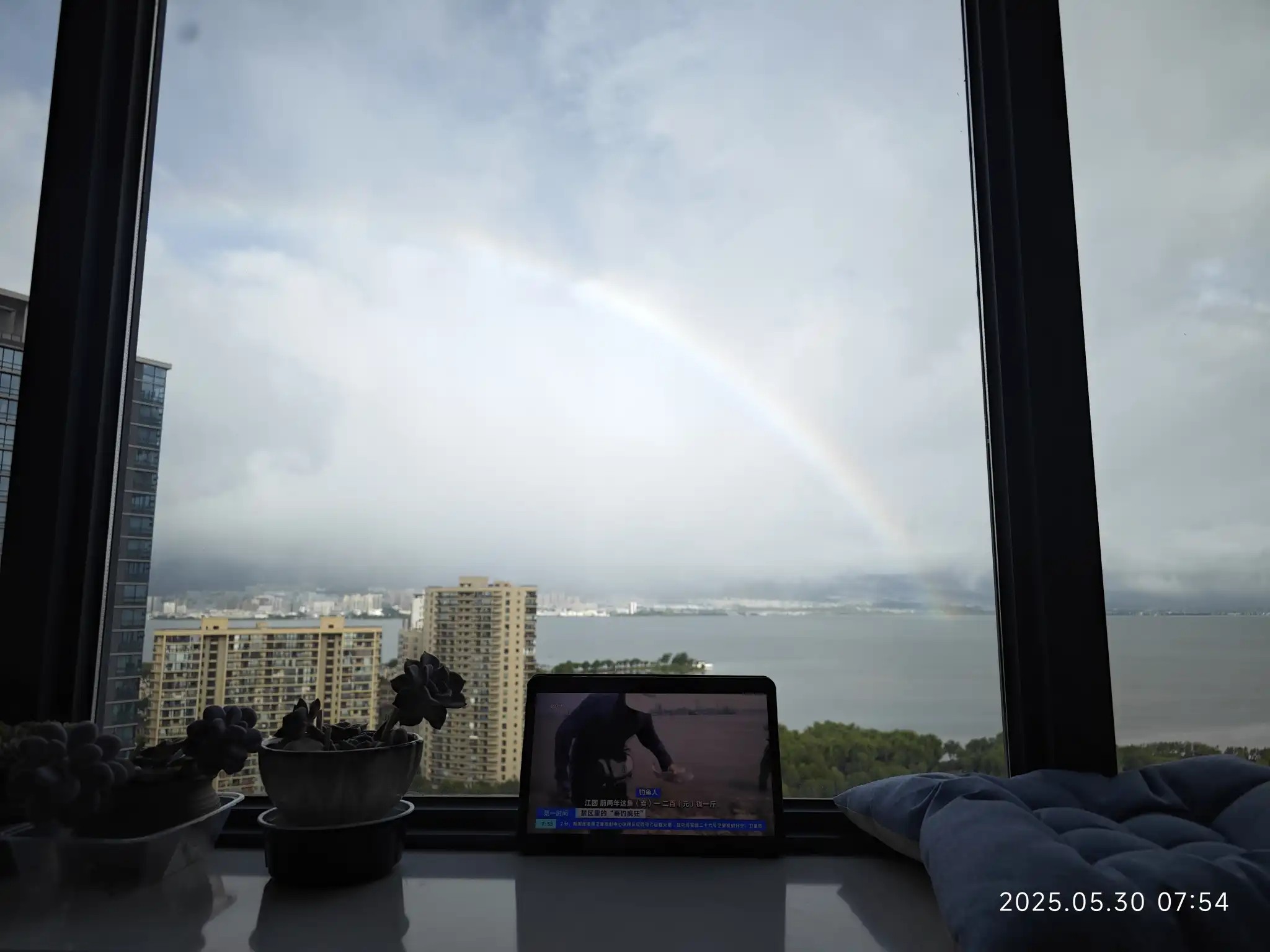 你下你的雨,我坐在窗前看直播也看彩虹。