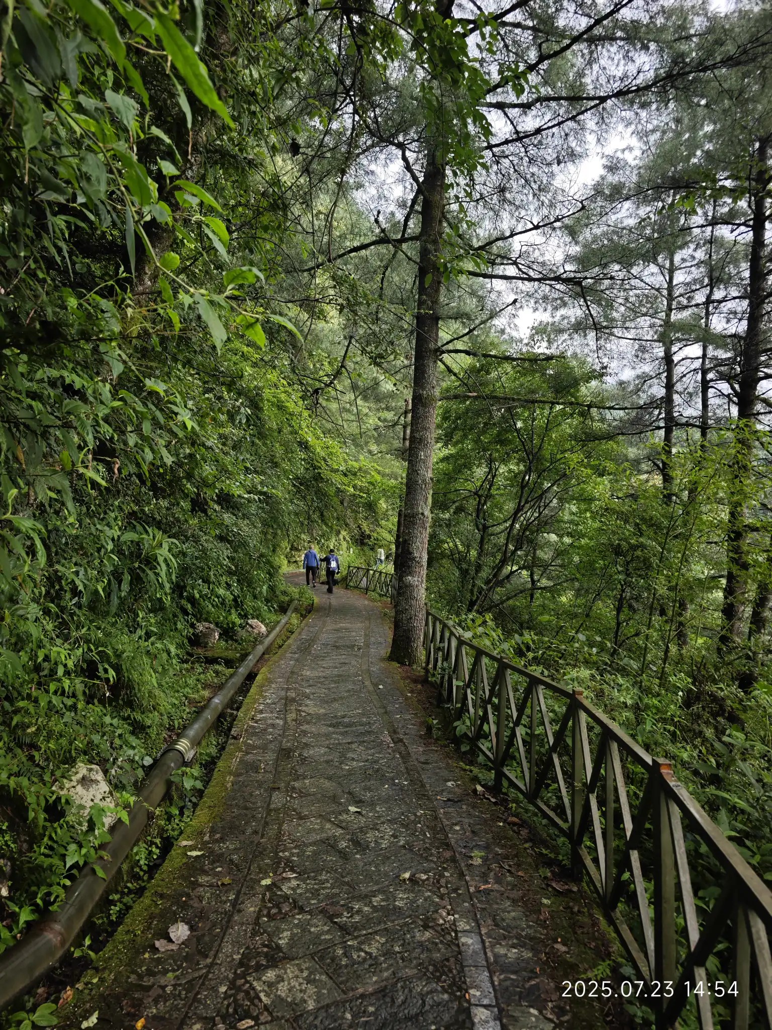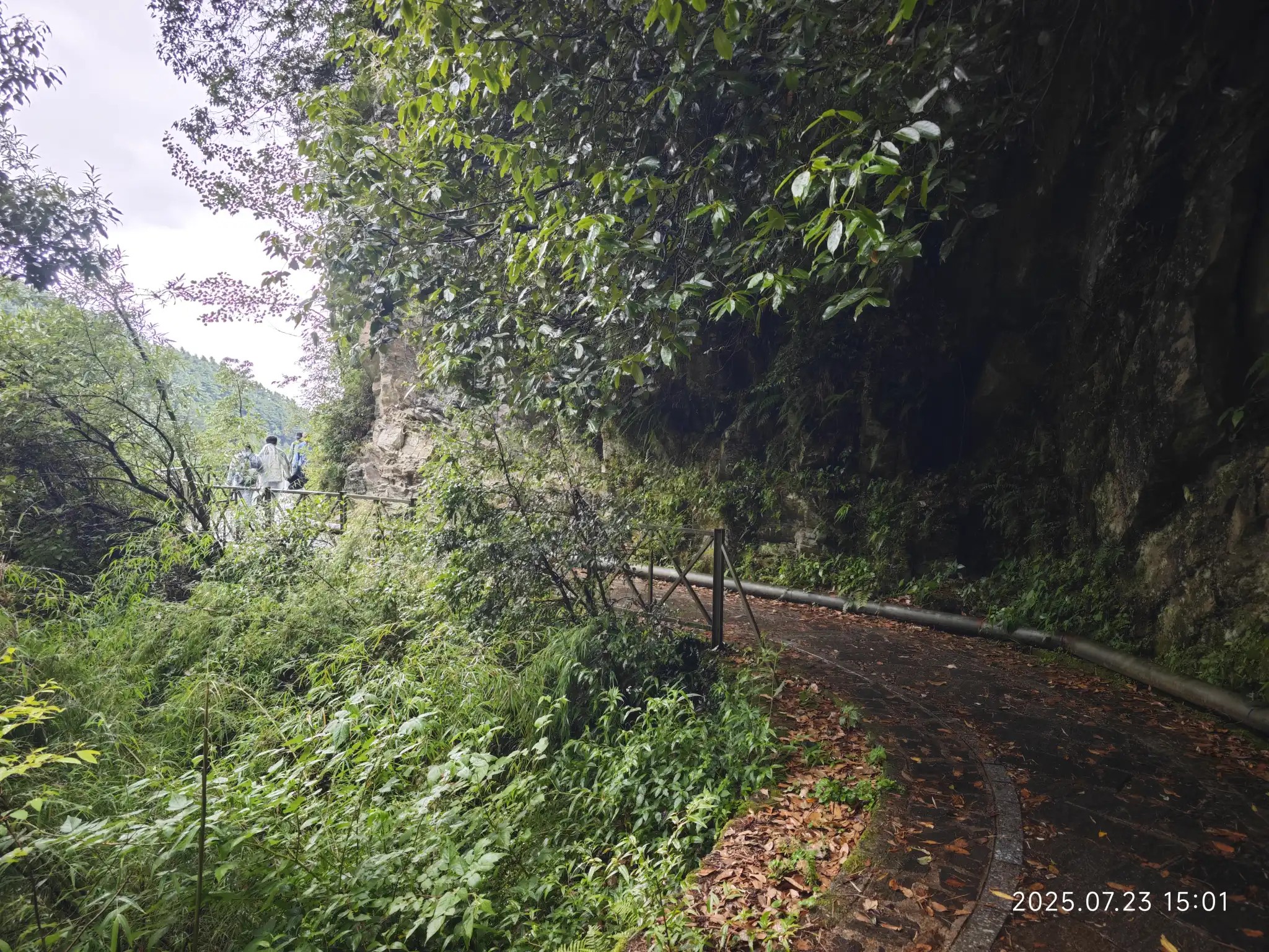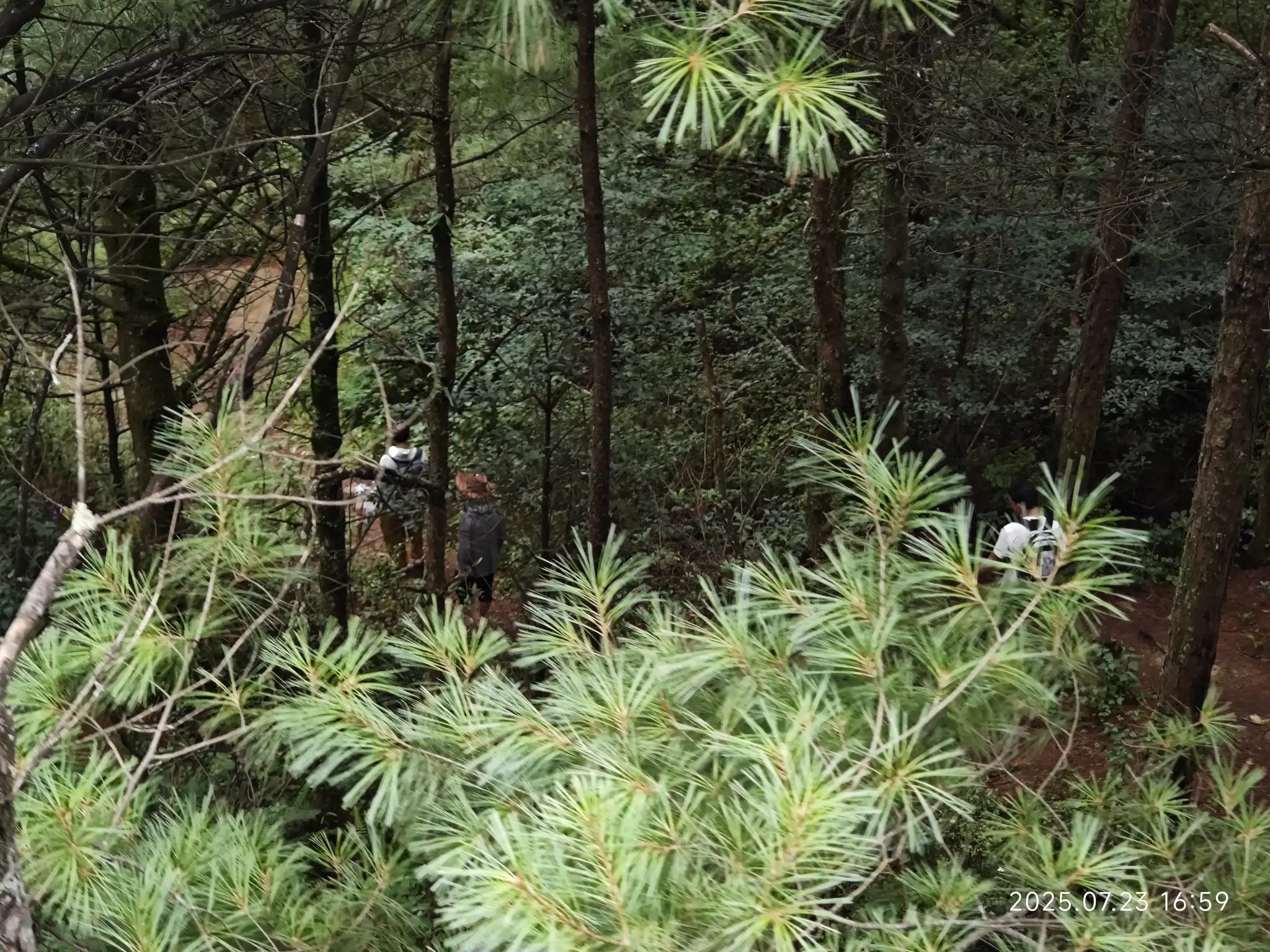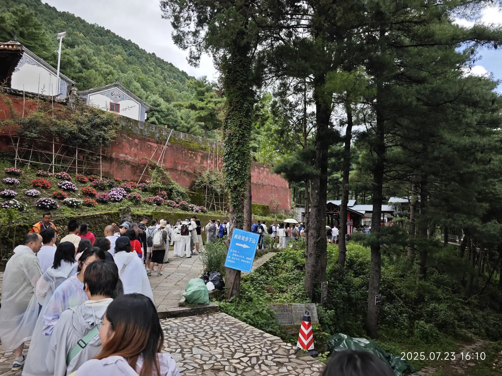 有人选择从修建索道的路徒步下山