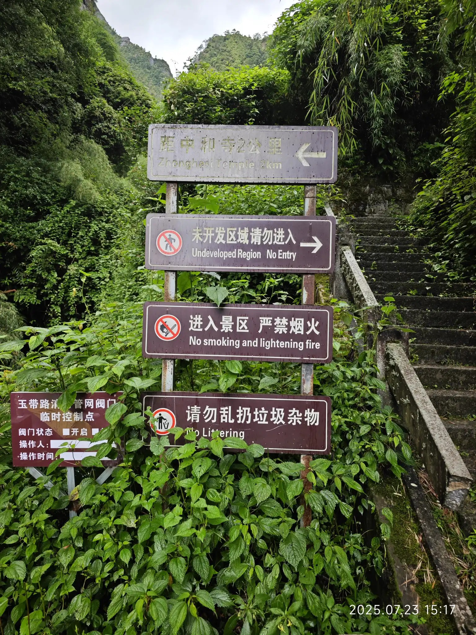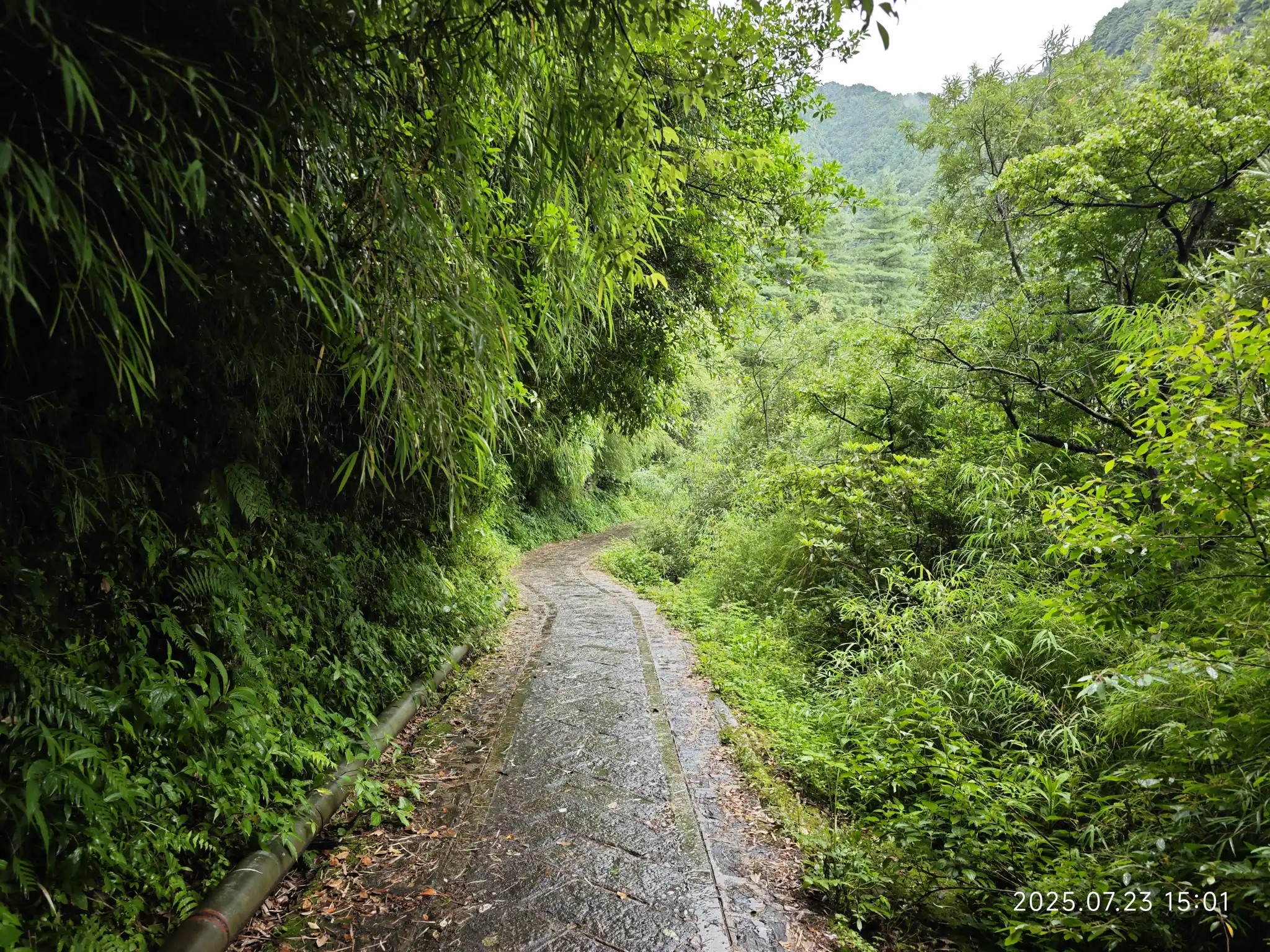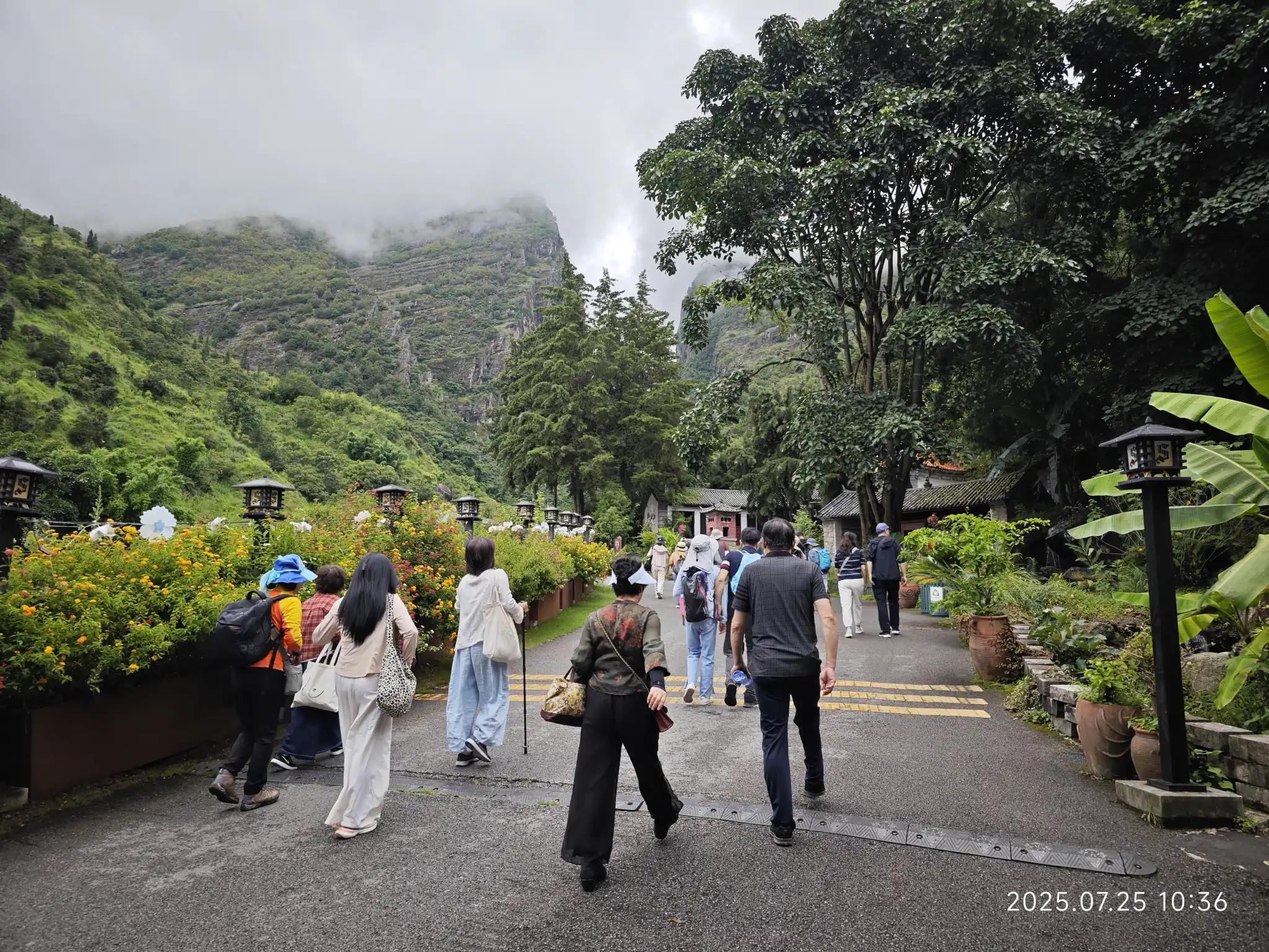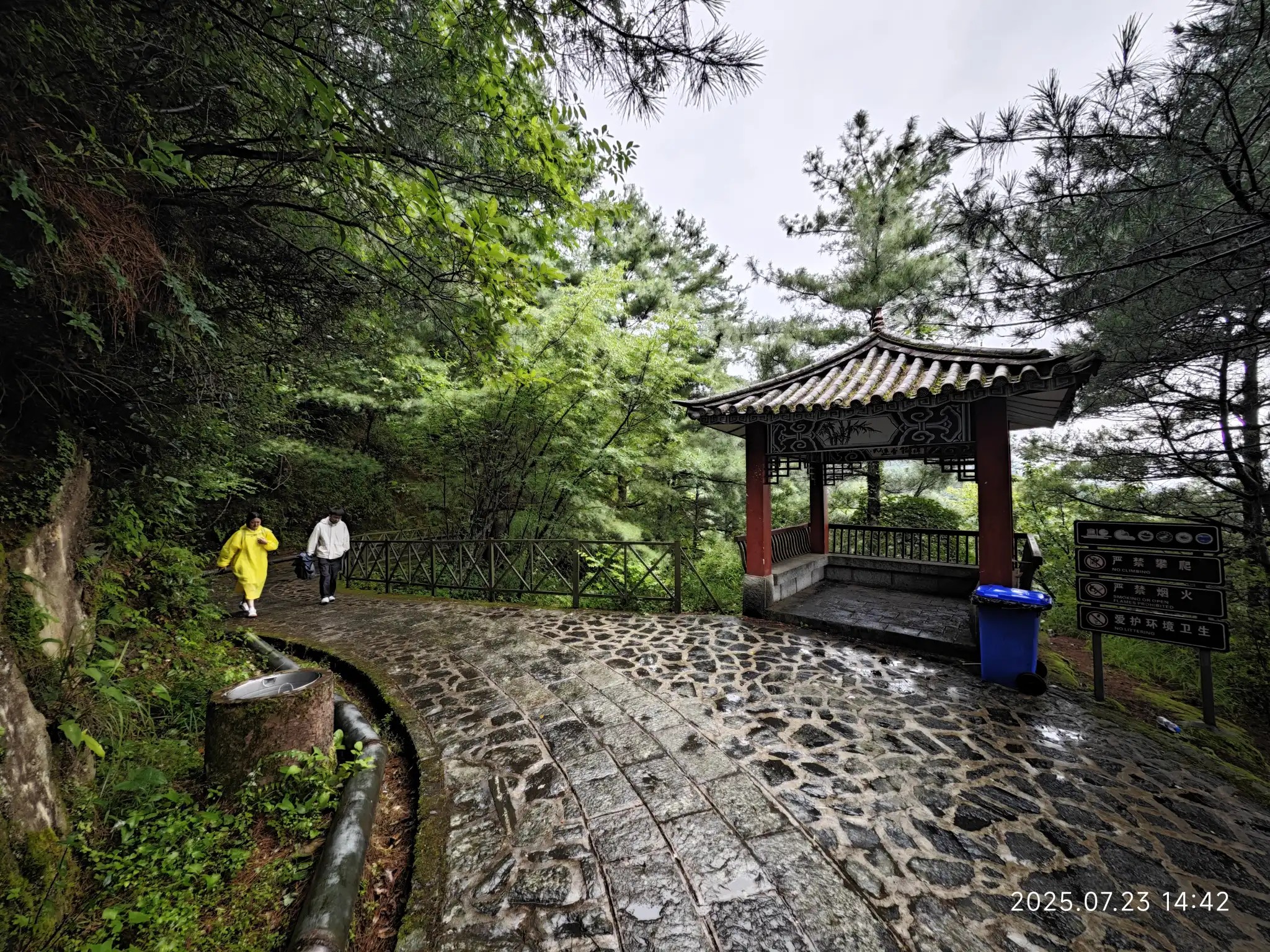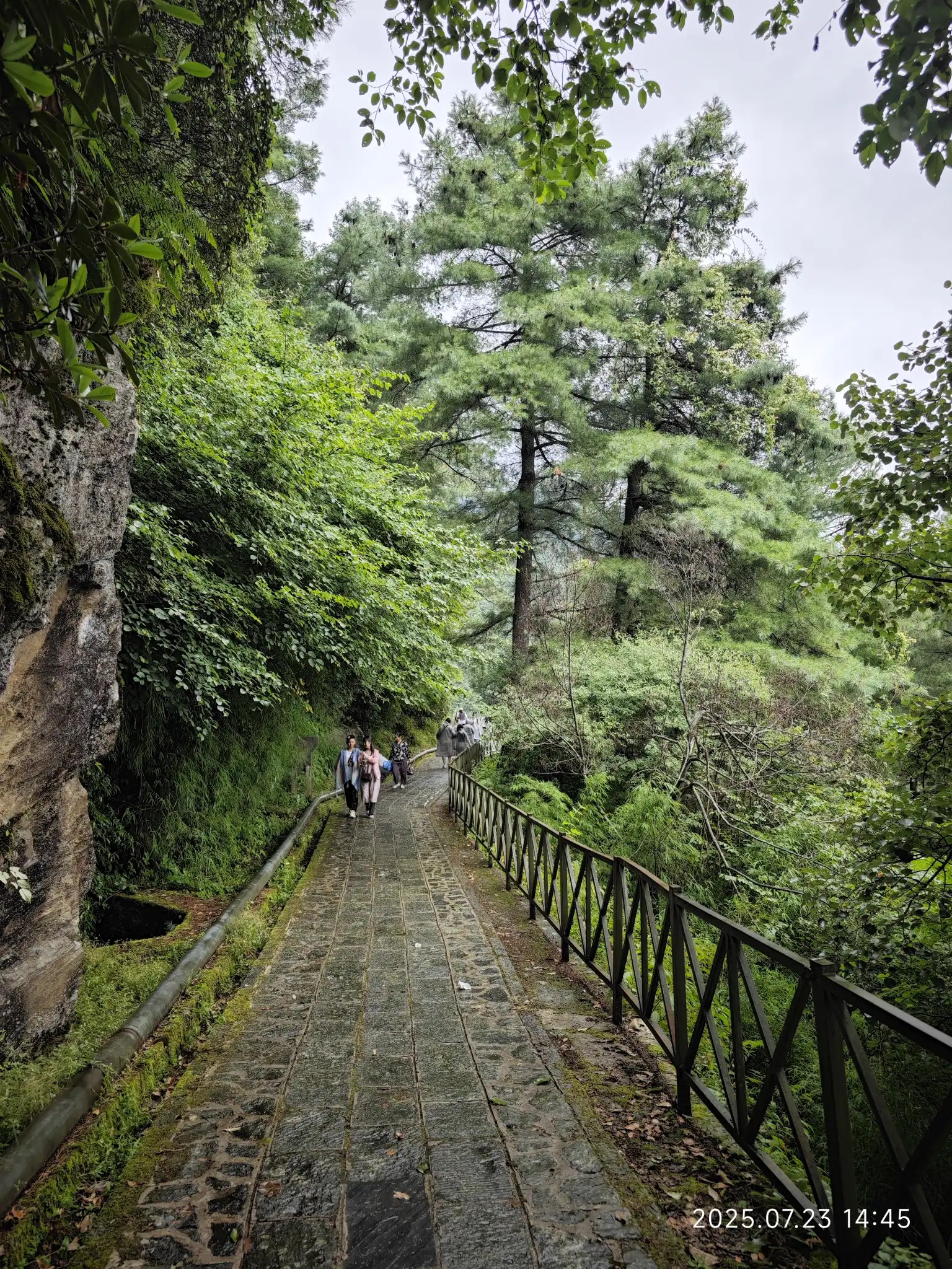 有人选择从修建索道的路徒步下山
